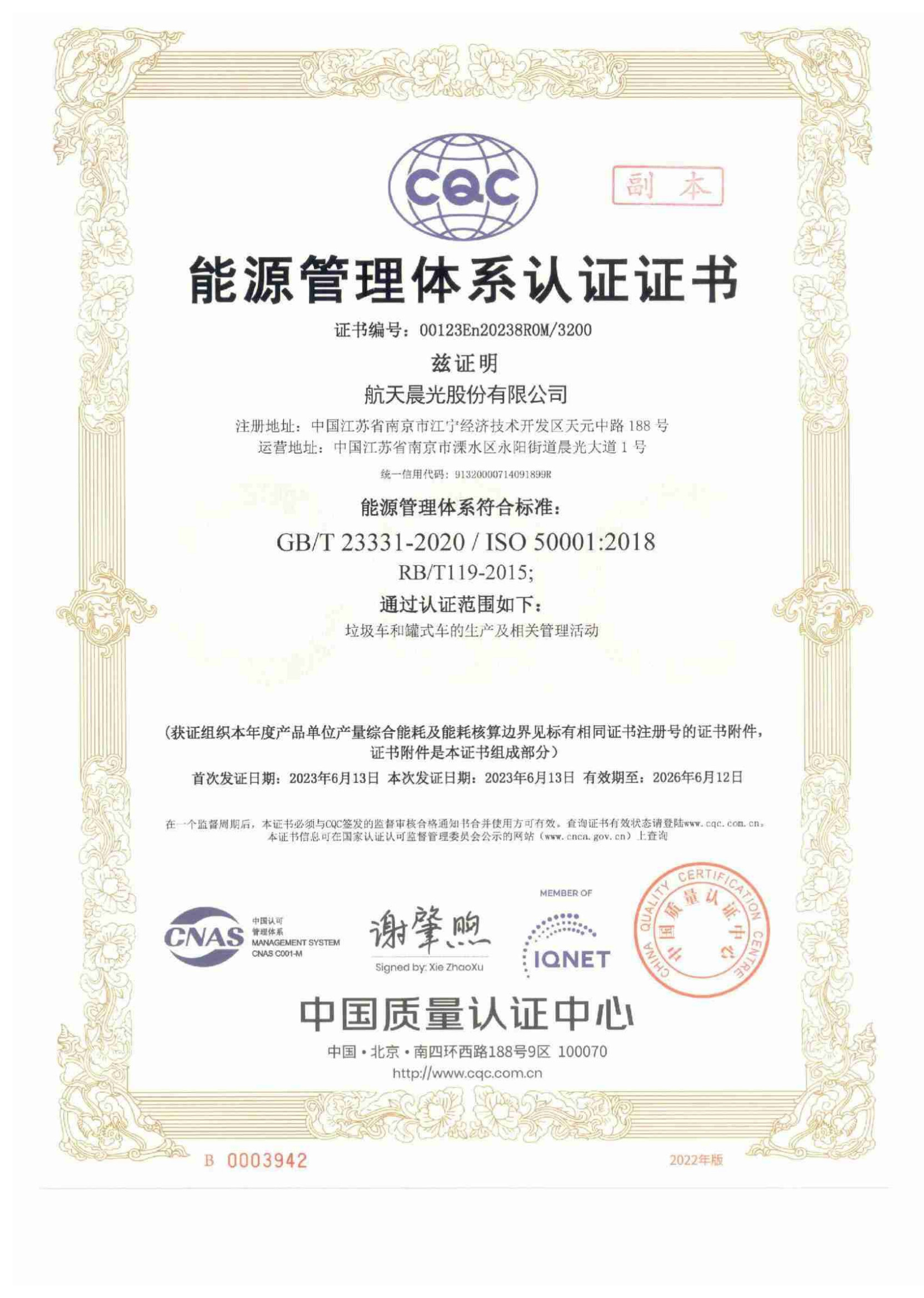 能源管理體系認證證書