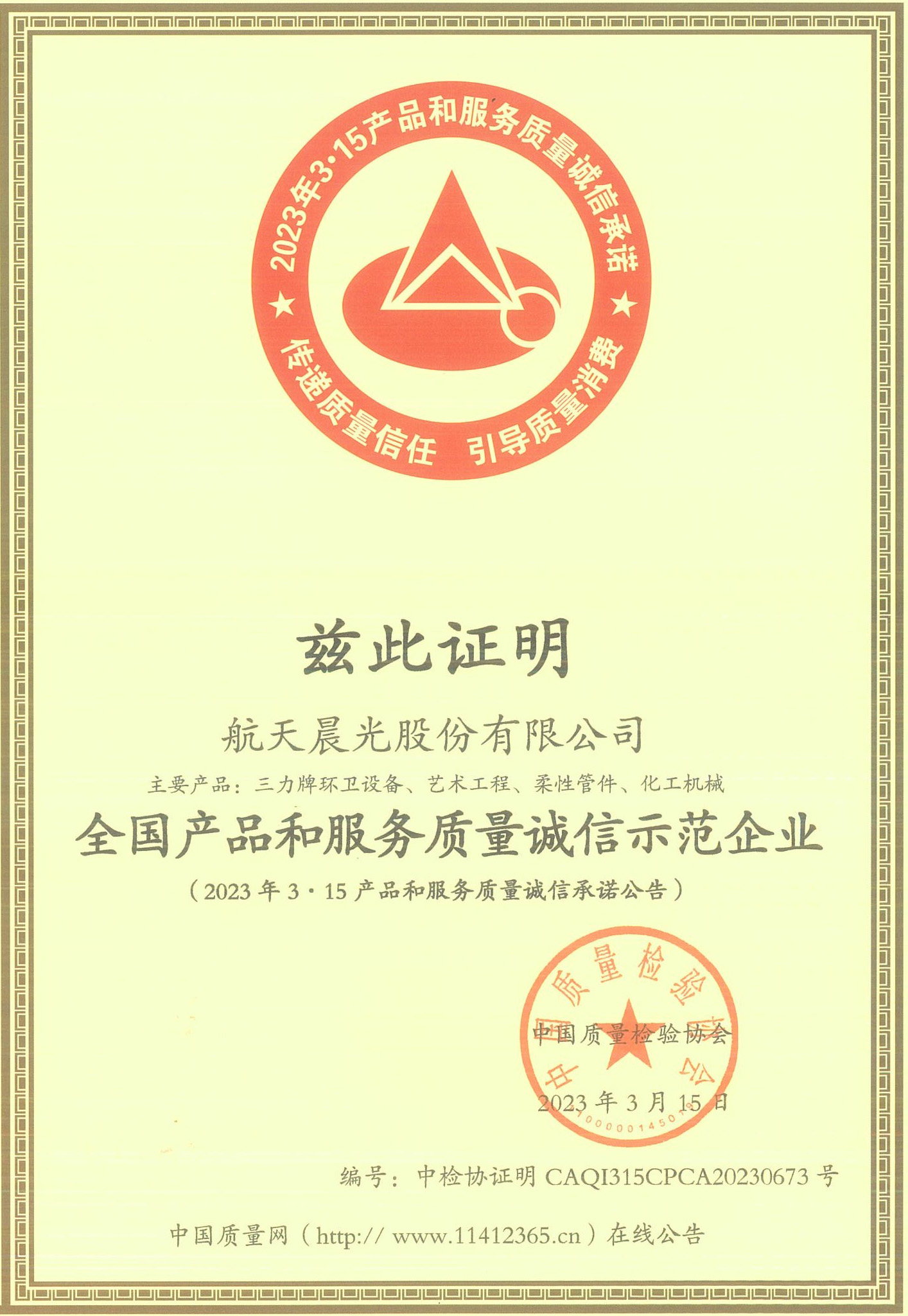 全國產品和服務質量誠信示范企業
