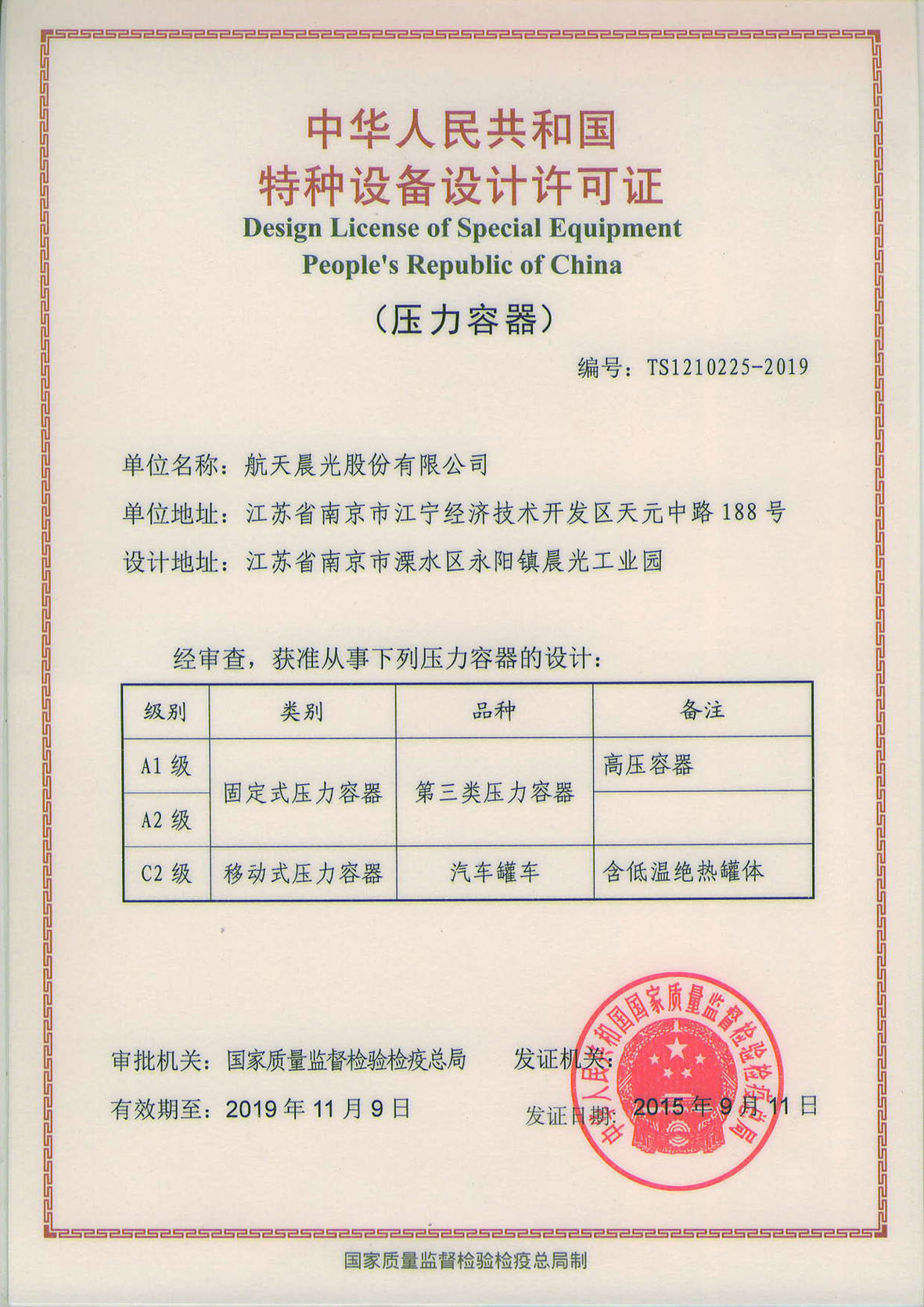 壓力容器特種設(shè)備設(shè)計(jì)許可證