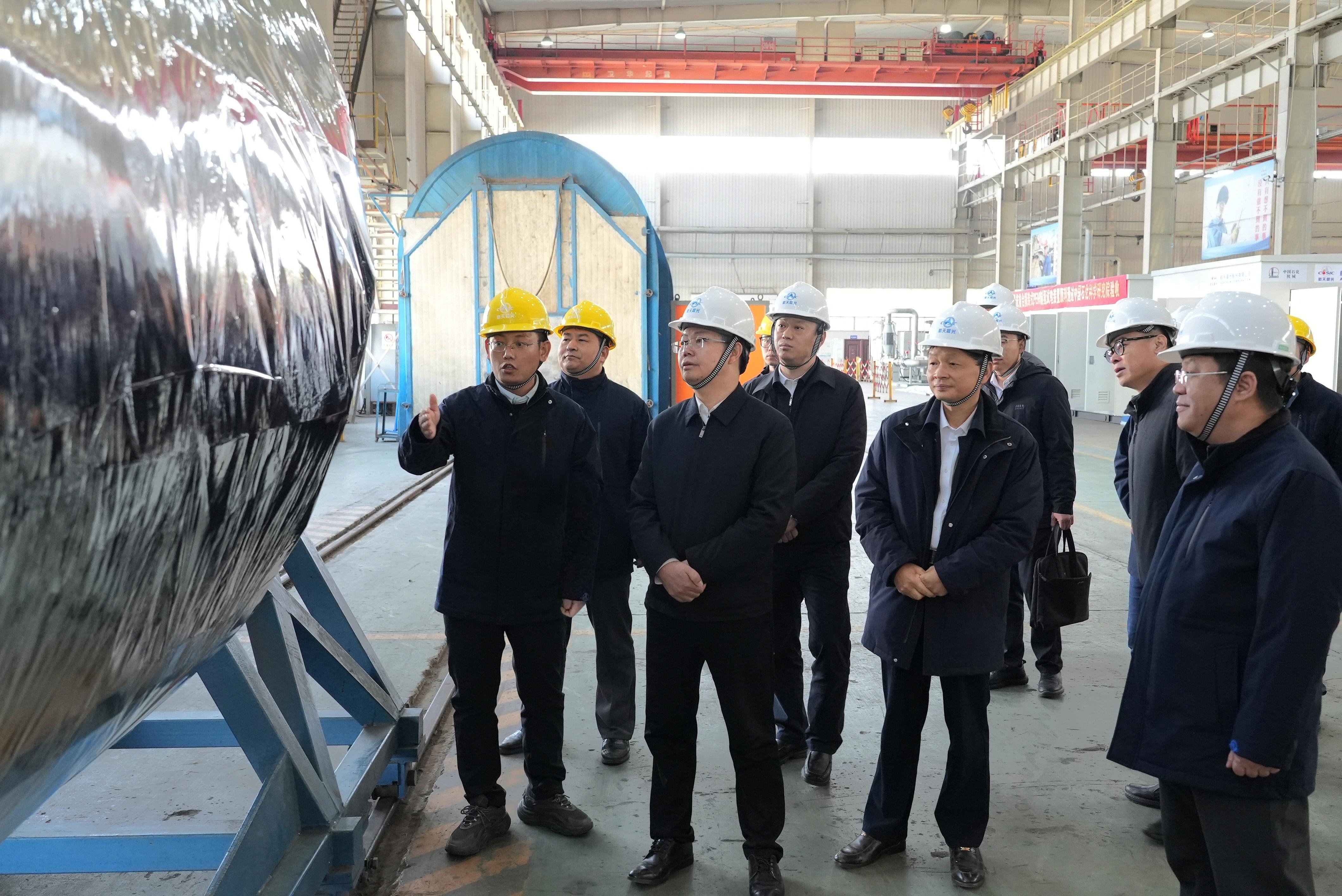 當(dāng)天,陳錫明一行深入航天晨光一線生產(chǎn)車間和重點(diǎn)實(shí)驗(yàn)室,現(xiàn)場了解航天晨光后勤保障裝備、航天防務(wù)配套以及氫能等產(chǎn)業(yè)發(fā)展情況。