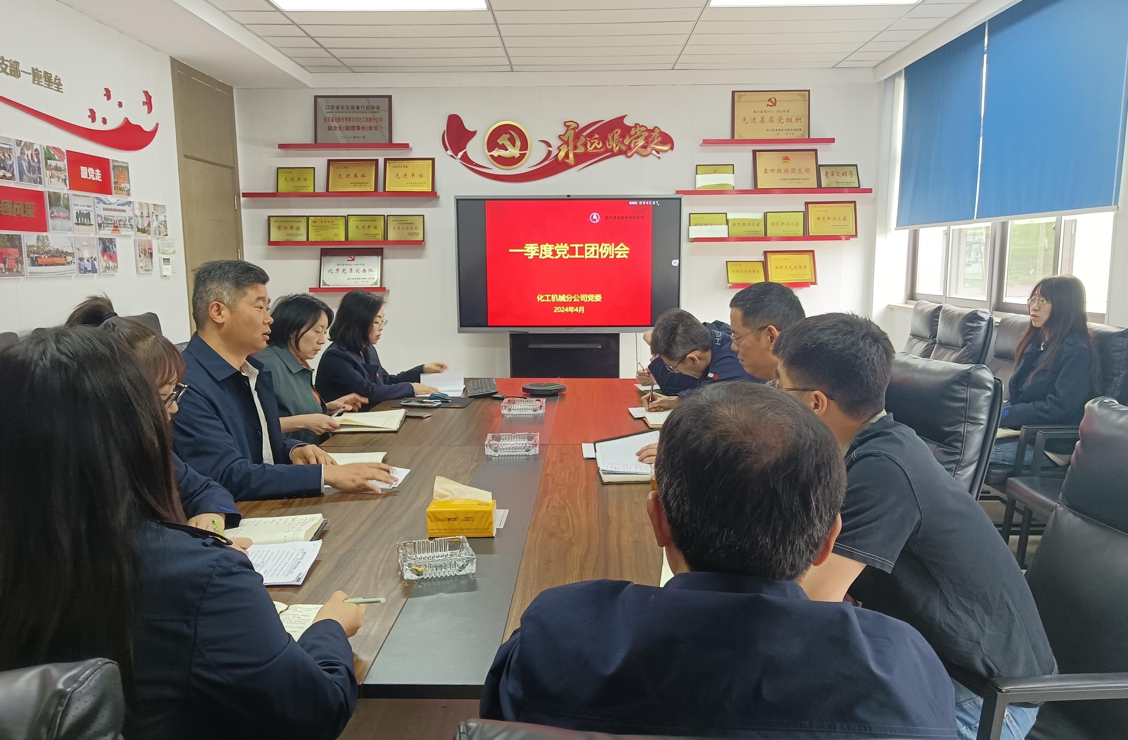 為深入實施“固本”工程,持續抓好基層黨支部標準化規范化建設,充分發揮黨建帶工建、促團建作用,近日,化機分公司黨委召開2024年一季度黨工團例會。分公司所屬三個黨支部全體委員,團支部、工會及黨委辦公室相關負責人參加會議。會議由分公司黨委書記儲志軍主持。