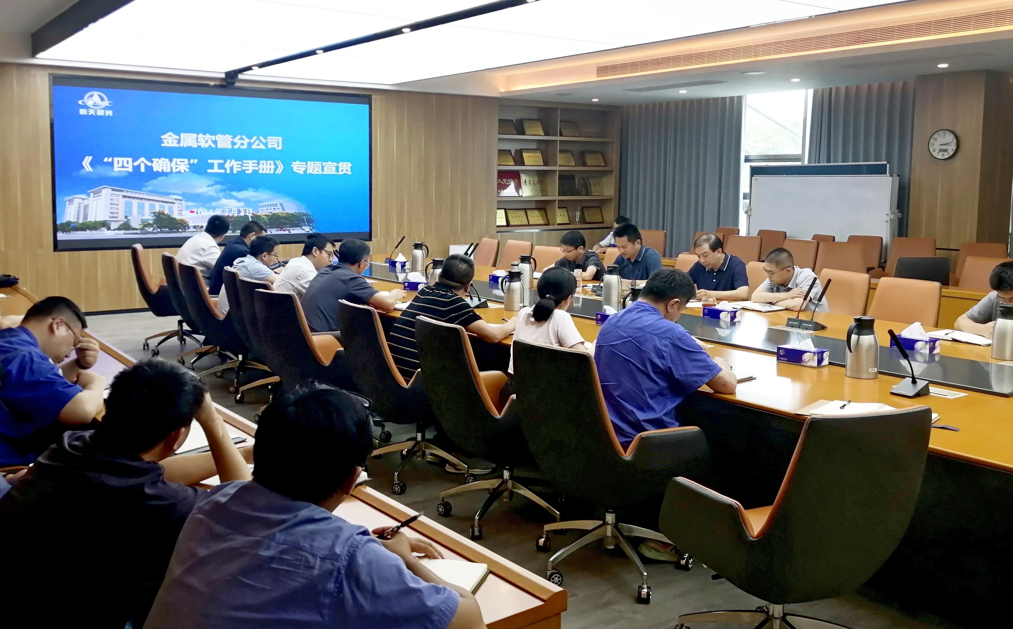 近日,航天晨光軟管分公司組織召開學習集團公司“四個確保”工作手冊專題會議。分公司在寧領(lǐng)導班子成員、各部門負責人、工段長參加會議,會議由分公司總經(jīng)理薛雄建主持。