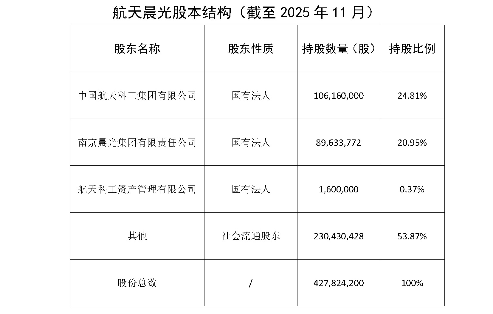航天晨光股份有限公司  >  投資者關(guān)系  >  公司治理  >  股本結(jié)構(gòu)